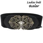 ベルト レディース 太い 太め ウエストバンド 伸縮性あり ファッションアクセント 大きめバックル ベルト穴なし 花柄 フェイクレザー PUレザー お