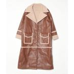 コート アウター fake leather soutien collar middle coat with liner / ライナー付きフェイクレザー