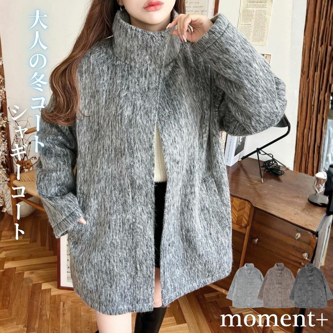 【57%OFF 6,990→2,990円/NEW ARRIVAL】コート スタンドカラー ミドル丈 ゆったり 体型カバー ボタンで開閉 シャギーコート シャギー アウター ジャケット かわいい 着回し レディース レディースファッション 大人 定番 2025AW 秋 冬 mt01092 [moment+/モーメントプラス]
