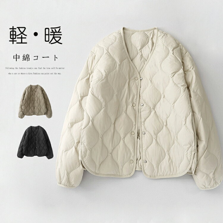 キルティングジャケット ノーカラー ジャケット 中綿コート レディース 秋 冬 黒 白 おしゃれ 長袖 ダウン風 アウター ^jk137^