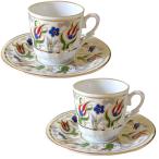 トルココーヒー用エスプレッソ デミタスコーヒーカップ&ソーサー珍しい小さめ陶器 2客セット G:チューリップ