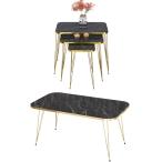 【並行輸入品】コーヒーテーブルセット 4点セット 長方形セット モダンなネストテーブル3枚とコーヒーテーブル付き アクセントテーブル4枚セット