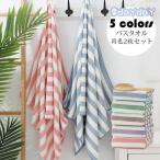 バスタオル 同色2枚セット サンゴネル バスタオル ゼント 柔らかい しっかり 吸水 極上肌触り ストライプ柄 おしゃれ かわいい プレゼント 贈り物 70*140cm 5色
