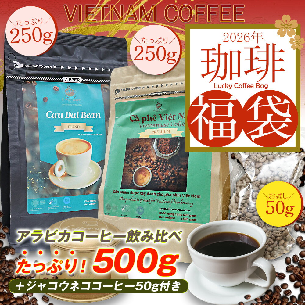 コーヒー 2026年福袋 クリスマスプレゼント アラビカコーヒー 飲み比べ 500g ジャコウネココーヒー コピ・ルアク ベトナムコーヒー ブレンドコーヒー アラビカ種 コーヒー 粉 珈琲 希少 ベトナム産 カフェフィン 送料無料【coffee-lbox】