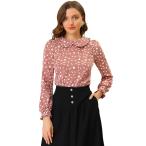 uxcell Allegra K フリル 丸襟 ブラウス トップス パフスリーブ 長袖 デイジー チェック柄 プリント レディース レッド S