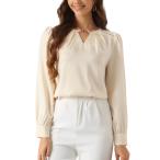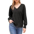 Allegra K レディース 長袖シャツ Vネックブラウス 軽量セーター 春秋 カジュアル チュニック トップス ブラック XS