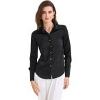 Allegra K レディース サテン シャツ ポイントカラー 長袖 ボタンダウン ワーク オフィス ブラウス 黒 M