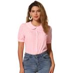 Allegra K トップス チェック ブラウス 半袖 コントラスト カラー カジュアル レディース ピンク L