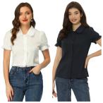 Allegra K チェックブラウス 丸襟 ボタンダウンシャツ パフ半袖 ギンガムトップス レディース ライトグリーン S