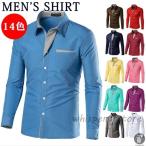 メンズ 長袖シャツ トップス ワイシャツ Yシャツ カラーシャツ 無地14色 切り替え カジュアルシャツ レギュラーカラー 白シャツ ビジネス