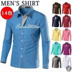 メンズ 長袖シャツ トップス ワイシャツ カラーシャツ 無地 14色 切り替え カジュアルシャツ 通勤 就活