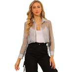 uxcell Allegra K シースルー トップス ボタンダウン クロップ シャツ シアー ブラウス ボウタイ レディース グレー XL
