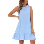 Allegra K レディース ノースリーブ ドレス フリルヘム ラウンドネック カジュアル スモック ミニドレス ブルー S