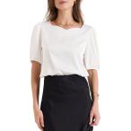 Allegra K レディース エレガント スウィートハートネック ハーフスリーブ オフィスワーク サテン ブラウス トップス ホワイトxS