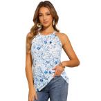 Allegra K レディース ノースリーブ ドレス フリルヘム ラウンドネック カジュアル スモック ミニドレス ブルー L