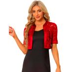 Allegra K ボレロ サテン カーディガン 前開き クロップ レース シュラッグ レディース レッド M
