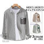 ストライプシャツ シャツ メンズ 長袖 メンズシャツ カジュアルシャツ ストライプ柄 切り替えポケット ストレッチ 凸凹感 羽織り カラー配色 春服 秋服