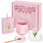 ソー プフ ラワー 花束コーヒーカップセットセット 母の日 誕生日プレゼント 女性 母親 姉 友達 結婚記念日 プレゼント妻 敬老の日 おしゃれ 退職祝いマグカップ 彼女 昇進祝い 送別会 結婚祝いプレゼント(ピンク)マグカップ蓋付き約300ml 保温 保冷 耐熱