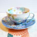 工房ゆずりは カップ&ソーサー 青彩花化粧 瀬戸焼 花柄 女性だけの工房 手描き 可憐 彩り豊か 母の日 陶器 コーヒーカップ ティーカップ