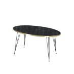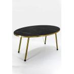 【並行輸入品】ブラックマーブル コーヒーテーブル メタル脚付き モダンスタイル ラウンドコーヒーテーブル リビングルーム用 モダンオーバルラウン