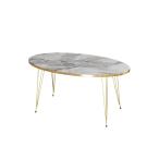 【並行輸入品】LITFAD モダンオーバル人工大理石 コーヒーテーブル ゴールドメタルフレーム リビングルームテーブル シェルフ付き カクテルテ