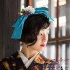 (Prices down4)袴 髪飾り リボン 成人式 お花 髪飾り2点セット「ターコイズブルーリボンとお花」リボンコーム リボン髪飾り お花髪飾りss2512wkk25