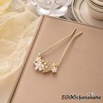 簪 かんざし コーム レディース 女性 ヘアアクセサリー ファッション雑貨 U字 花 フラワー ラインストーン フェイクパール ホワイト ゴールドカラ