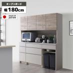 ★10%OFF★ 食器棚 完成品 大川家具 レンジ台 ゴミ箱 幅180cm 豪華可憐な総ソフトクローズの高級キッチン収納 ドレス2 オープンボード 鏡面 木目 ホワイト 白 設置無料 国産 完成品 日本製
