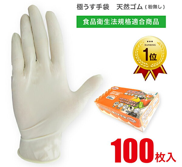 ゴム手袋 使い捨て 天然ゴム 極薄手 天然ゴム極うす手袋 粉なし Mサイズ 100枚 食品衛生法適合