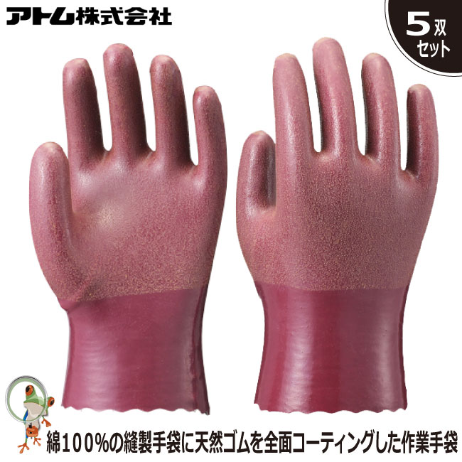 【★送料無料★】手袋 作業用手袋 ゴム手袋 作業用 アトム 214 ラバーホープ 特価5双セット【農業・漁業・水産加工・土木建設】耐久性 天然ゴム グリップ力