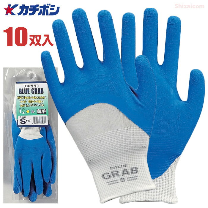 カチボシ B-001 ブルーグラブ 【10双入】 優れたグリップ力の背抜きタイプの天然ゴム手袋です。 作業手袋 ゴム手袋 スベリ止め手袋 rev