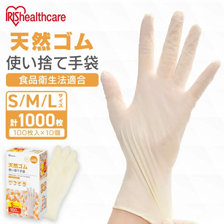 [最大400円クーポン]ゴム手袋 使い捨て 1000枚 100枚入×10個 左右兼用 作業用 パウダーフリー 薄手 食品衛生法適合 キッチン 調理 介護 使い捨て手袋 粉なし 作業用手袋 手袋 アイリスオーヤマ 天然ゴム手袋 S M L NR-100S NR-100M NR-100L *