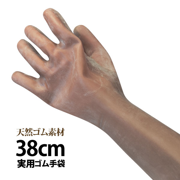 ●実用ゴム手袋 38cm天然ゴム手袋 手の平スベリ止め加工≪ネコポスの場合1双まで可≫