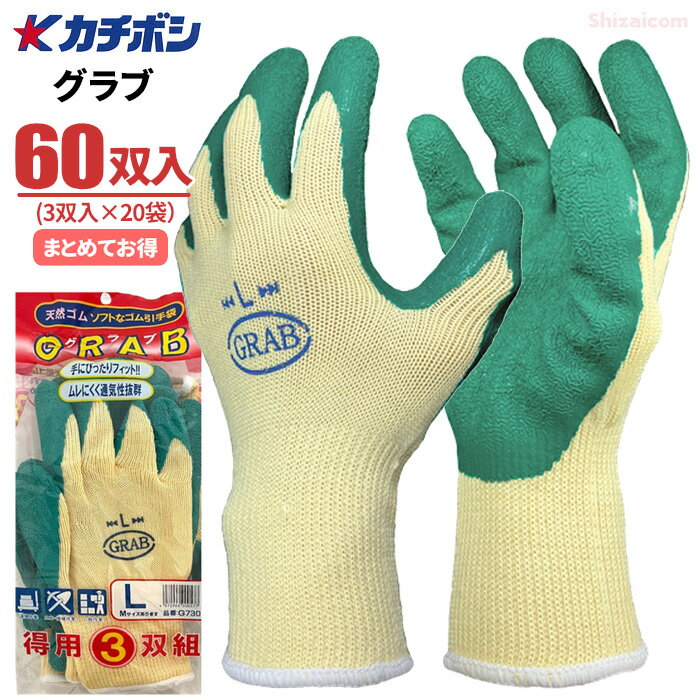 カチボシ グラブ 【60双入(3双組×20袋)】 手にピッタリフィット!手の平部分に天然ゴムコーティングでしっかりグリップ! 薄手 作業手袋 ゴム手袋 ゴム引き手袋 スベリ止め手袋 rev