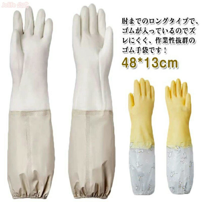 6%OFFクーポン★ロングゴム手袋。肘まですっぽりで濡れずに食器洗い キッチン 愛い おしゃれ 花柄 かわいい カラフル 濡れない 水仕事 裏起毛 裏毛 厚手 掃除 風呂掃除 長い 腕が濡れない 人気 おすすめ アームカバー付