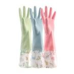 ゴム手袋 キッチン 花柄 ロングタイプ 裏起毛 厚手 手荒れ 3色セット