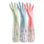 ゴム手袋 ロング キッチン 3点セット 裏起毛 かわいい 繰り返し使用 ロングスリーブ 食器洗い キッチン掃除 トイレ掃除 浴室掃除 クリーニング 掃除 レディース そうじ 風呂掃除