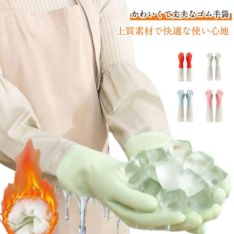 ゴム手袋 家事用ゴム手袋 キッチングローブ ロング キッチン 裏起毛 作業用 長い 食器洗い 裏起毛 厚手 防水手袋 作業手袋 滑り止め 洗車 洗い物 食器洗い 洗濯 園芸 炊事 家