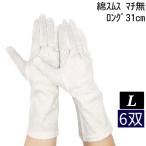 綿手袋 (ロング 31cm) スムス マチなし 手荒れ防止 ゴム手袋のインナー下履き ハンドケア 品質管理 Lサイズ - 6双