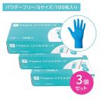 【3個セット】ニトリルグローブ ブルー パウダーフリー Sサイズ 100枚入 ゴム手袋 使い捨て 粉なし 着脱しやすい 強度 伸張 フィット 薄手 左右兼用 衛生用品