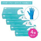 【4個セット】ニトリルグローブ ブルー パウダーフリー Sサイズ 100枚入 ゴム手袋 使い捨て 粉なし 着脱しやすい 強度 伸張 フィット 薄手 左右兼用 衛生用品