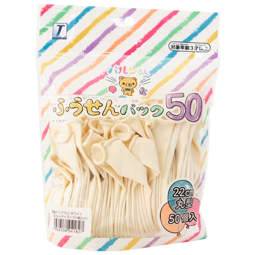 パーティー バースデー 飾り付け バルンるん 風船パック50 ホワイト 約22cm(注入後)丸型ゴム風船/50個 パッケージサイズ:W19.5cm×H15cm 0711010316 1セット(5袋入)