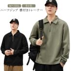 メンズ ハーフジップ 襟付き トレーナー 長袖 スウェット ポロシャツ トップス ゴルフウェア スポーツ 無地 シンプル カジュアル ルームウェア 春