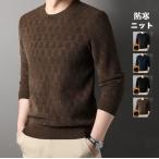 ゴルフウェア メンズ ゴルフ ニットセーター おしゃれ ニット 秋冬 クルーネック 長袖 トップス