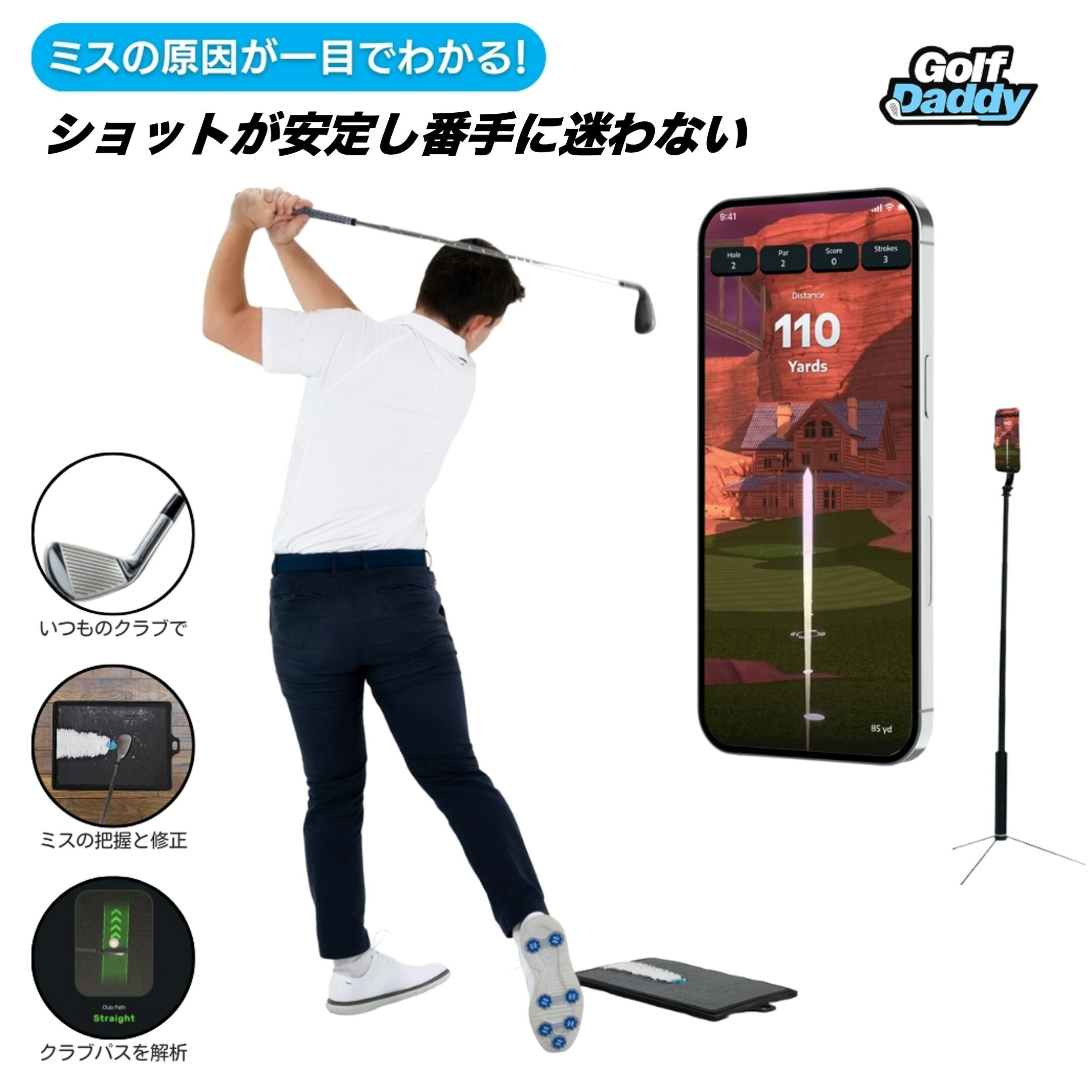 【楽天スーパーSALE10%OFF】常住プロ絶賛‼︎ Golf Daddyシミュレーター ボール不要 自宅 スイング練習 ゴルフ練習器具 ダウンブロー スライス ダフリ解消 クラブパス 軌道解析 ゴルフダディ 日本公式 家庭用 AI解析 お歳暮 冬ギフト クリスマス
