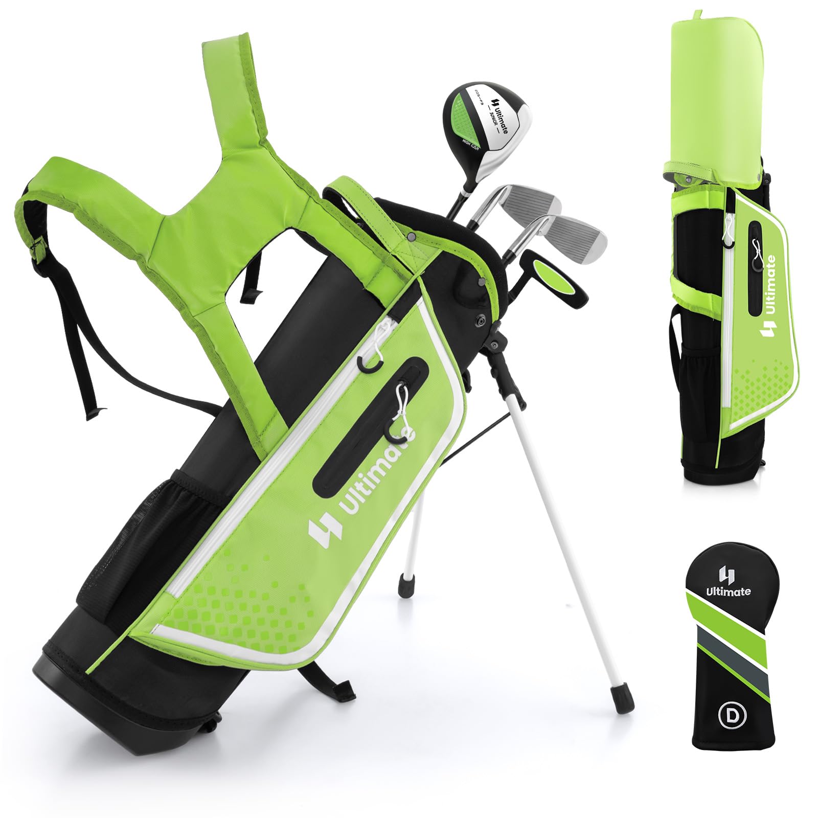GYMAX ジュニアクラブセット 子供 ゴルフクラブセット キッズ ゴルフセット 初心者向け 右用 クラブ4 本 ゴルフバッグスタンド付き ヘッドカバー付き 軽量 プレゼント ジュニア専用 女の子 男の子 爽やかなグリーン (5・7歳向け)