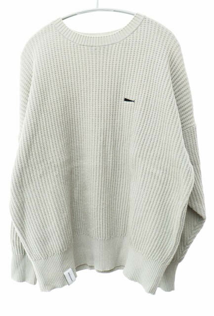 【中古】ディセンダント DESCENDANT 22AW GAUFRE KNIT WAFFLE ロゴ 刺繍 ゴーフル ワッフル クルーネック ニット セーター 222MADS-KNM02 2 灰 グレー ブランド古着ベクトル 中古260128 メンズ
