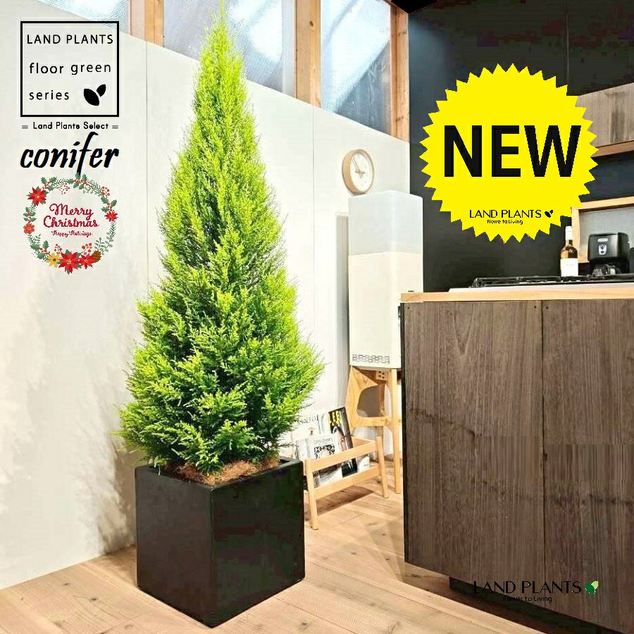 ゴールドクレスト(ツリー型:180cm) 10号 黒色 ファイバー製 キューブ型 陶器鉢 1鉢 【受皿・ココファイバー】 クリスマス クリスマスツリー ヒバ コニファー コニファ ヒノキ 針葉樹 conifer Hesperocyparis macrocarpa 'Goldcrest'