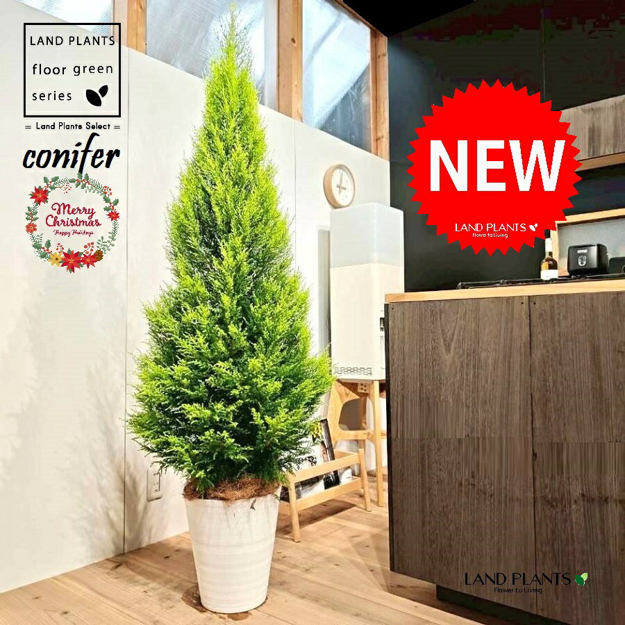 ゴールドクレスト(ツリー型:180cm) 10号 白色 セラアート鉢 1鉢 【受皿・ココファイバー】 クリスマス クリスマスツリー ヒバ コニファー コニファ ヒノキ 針葉樹 conifer Hesperocyparis macrocarpa 'Goldcrest'