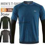 速乾 tシャツ メンズ 長袖 スポーツ Tシャツ ロンT 重ね着風 ゴルフウェア サイクル シャツ ロングTシャツ ティーシャツ 春夏